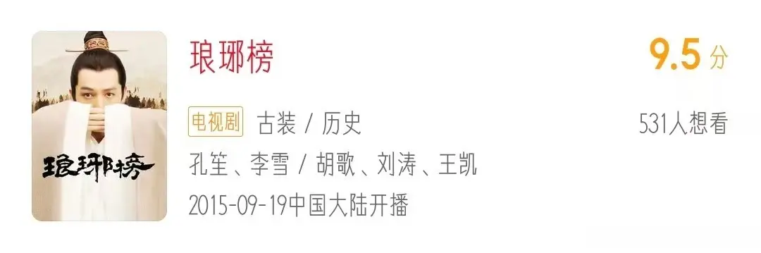 那就是《琅琊榜》了,这部剧能够稳坐第一,是比那四部剧吃到更多的红利,也更有优势。